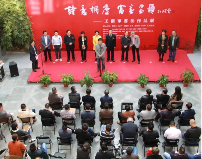 赵雁君书记在讲话中指出王卫军的书风是典型的江左风流。他的书法作品既有魏晋时期帖学的精美,又有汉魏风骨的率真与真切。他在讲话中提到他与王卫军先生一起策划的江苏浙江的书法联展,也即将在浙江展览馆开幕。他认为江浙联展不仅仅是两个书法大省书法强省的学术艺术交流,更重要是在于把江苏的展览引到浙江,从江苏的创作看浙江,对浙江的启示。他认为此次桐庐引入王卫军先生的展览,不仅仅在艺术角度上对桐庐书法界有非常值得参考的价值,对浙江书坛的创作现象也会有很多启发。从书法艺术追求上、事业发展上来讲,对浙江书法的发展也将是一个促进。