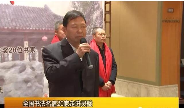 11月18日,全国书法名宿20家走进灵璧 ,开展墨润灵璧活动。县政协主席王怀启,副主席徐凯出席欢迎仪式。 王怀启致辞说,灵璧历史悠久,文化底蕴深厚,民风淳厚,这里是奇石之乡,钟馗故里,垓下古战场,源远流长的国学、深远的汉风遗韵与书法艺术在这里交汇,碰撞出美丽的艺术火花。全国书法名宿20家走进灵璧开展墨润灵璧活动,将在灵璧书法艺术发展史上留下浓重的一笔,为灵璧书法艺术发展起到积极的推动作用。