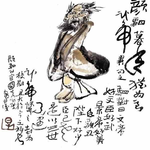 虽然说画画是件既用脑又用手的快乐行当,倒也真是历尽了寒冰的死亡地带得以重见天日。几十年来,人们溷滞于混乱的逻辑生活中。“深入生活”,得到的回报是沉重的沉默;“没有调查研究,就没有发言权”,有了发言权的彭德怀却招来厄运,“你们要关心国家大事”,真要关心起来,却又叶公好龙似的令人害怕。哲学上范畴的破坏,文艺上“载道”和“言志”的文体功能变成了对立的阶级斗争之武器。柳宗元《江雪》诗云:“千山鸟飞绝,万径人踪灭,孤舟衰笠翁,独钓寒江雪。”在此景象中,垂钓的剩下郭沫若、浩然……间或还有两三两个海豚式的文艺人物在海中时冒时没“划”着“时代”创作“刹那牌”经典。
