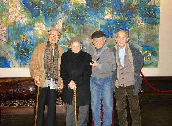 老友相聚,左起:许麟庐、黄苗子、黄 永玉、黄永厚