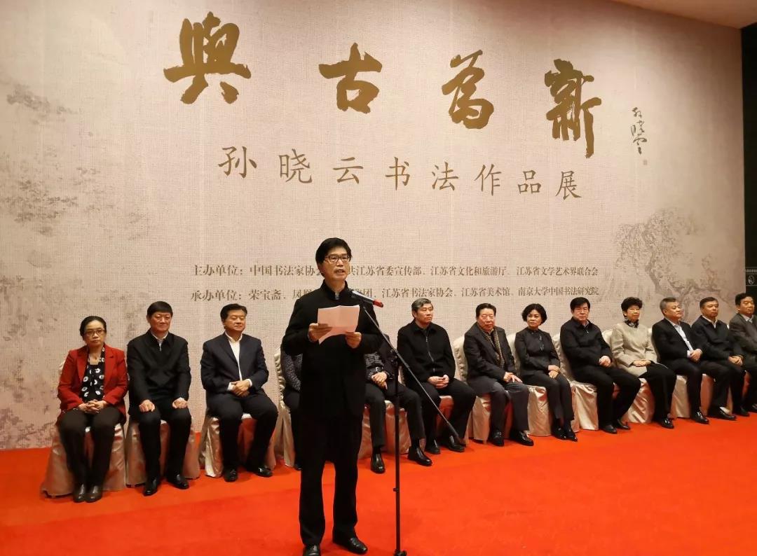 开幕式由江苏省文联党组书记、常务副主席、书记处第一书记水家跃主持。全国政协常委、中国书法家协会主席苏士澍,江苏省文联主席章剑华分别致辞。孙晓云向中国国家博物馆赠送书法作品和作品集并致答谢词。