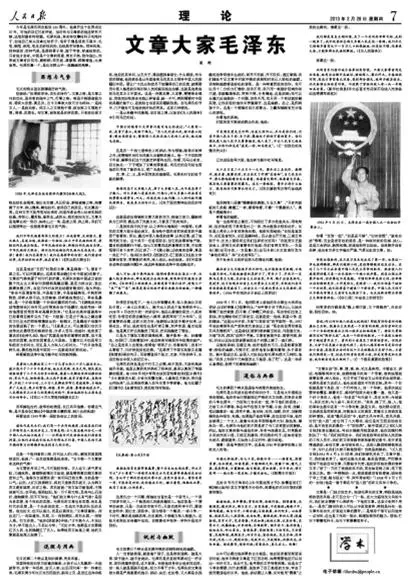 今年是毛泽东同志诞辰125周年。他离开这个世界将近42年,对他的功过已有评说,但对作为文章家的他还研究不够,这笔财富有待挖掘。毛泽东说,革命夺权靠枪杆子和笔杆子,但他自己却从没拿过枪杆子,笔杆子倒是须臾不离手,毛笔、钢笔、铅笔,笔走龙蛇惊风雨,白纸黑字写春秋。那种风格、那种语言、那种气派,是浸到骨子里,溢于字表、穿透纸背的,只有他才会有。中国是个文章的国度,青史不绝,佳作迭出。向来说文章有汉司马、唐韩柳、宋东坡、清康梁,群峰逶迤,比肩竞秀。毛泽东算一个,是历史群山中一座巍峨的高峰。