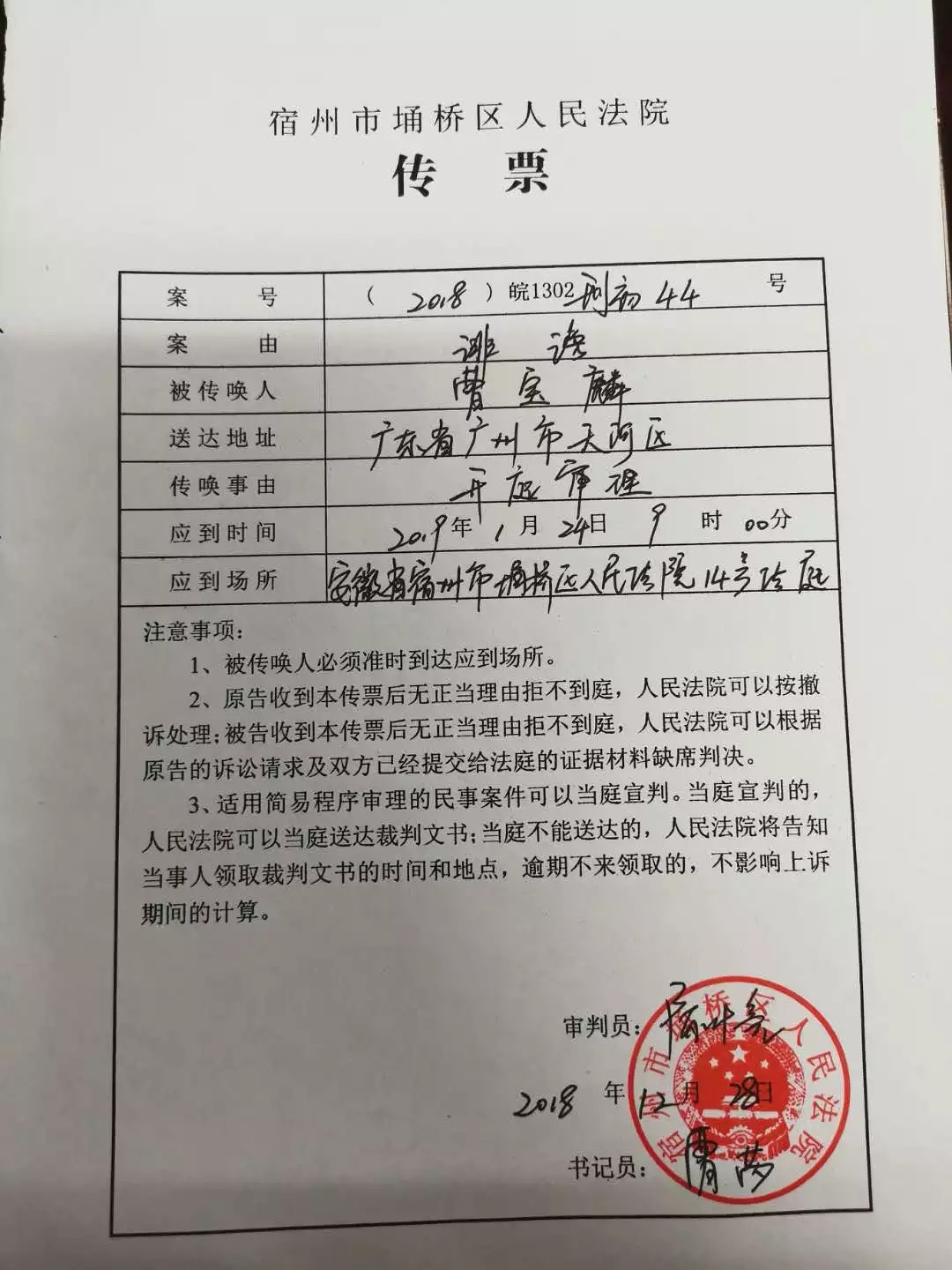 此事缘起要追溯到2017年底,知名书法家、暨南大学教授曹宝麟实名举报安徽省书法家协会主席李士杰一事涉嫌贿选这一备受艺术界关注的事件,今年5月李士杰通过法院起诉曹宝麟,并索赔医药费900多元、精神损失费2500万元,此事经过后来中国文联考虑事态发展,出面调停。5月14安排我与李士杰及李的代理律师见面和解,李士杰代理律师当时表示愿意申请撤诉。然而6个月后,曹宝麟仍然接到宿州市埇桥区人民法院的传票,说李士杰不撤诉,案件于2018年11月1日上午9时开庭审理。