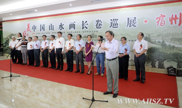 8月18日上午,由省政府参事室、省文史研究馆、市政府、市委宣传部主办,中央文史研究馆书画院安徽分院、市文广新局、市文联承办的“美好安徽—中国山水画长卷巡展·宿州”在市博物馆开幕。省政府参事室党组书记、主任周庆,省文史研究馆馆长、安徽大学党委书记黄德宽,市委常委、宣传部长何志中,市政府副市长邵郁出席开幕式。