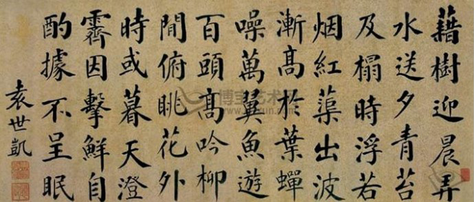 袁世凯(1859年—1916年),字慰庭,号容庵,是中国近代史上赫赫有名的北洋军阀鼻祖、中华民国大总统,风云一时,叱咤中国政坛。1859年9月16日,他出生在河南项城县一个世代官宦的大家族。父祖多为清朝显贵,权重一方。袁世凯早年科举不第,又逢清季兵燹,便弃文投军,依附淮军将领吴长庆门下。1892年,大清藩属朝鲜内乱,求助于清庭,袁世凯即随军入朝平乱。驻朝期间,袁世凯头脑灵活,办事机敏、干练,表现出较高的外交、军事才能,颇为清庭朝野瞩目。1894年受李鸿章保举为驻朝总理大臣。1895年受命以道员衔赴天津督练“新式陆军”。他仿造欧洲军制训练军队,取得极大的收获。同时在此基础上扶植自己的势力,形成了日后北洋军阀的班底。1898年参与镇压维新派。1899年任山东巡抚,逐步接近清廷的权力中枢。1901年升任直隶总督兼北洋大臣。1907年入主军机处、兼任外务部尚书。1908年宣统帝继位,受清皇室排挤,袁世凯被迫下野,隐居彰德府(今安阳市)洹上村别墅——“养寿园”。1911年辛亥革命爆发,受国内外形式所迫,清庭被迫重新起用袁世凯,由其出任总理内阁大臣,主持军政。革命当前,袁世凯深知清庭气数已尽,无可挽回,便联络全国革命势力及其旧部,倒戈一击,逼迫清帝退位,实行共和。1912年3月,袁世凯因促成共和有功,当选中华民国临时大总统。随后不久,被推举为中华民国首任总统。1915年12月宣布恢复帝制,建立中华帝国,并改元洪宪。1916年3月22日,内外交困,被迫宣布撤消帝制,恢复民国。
