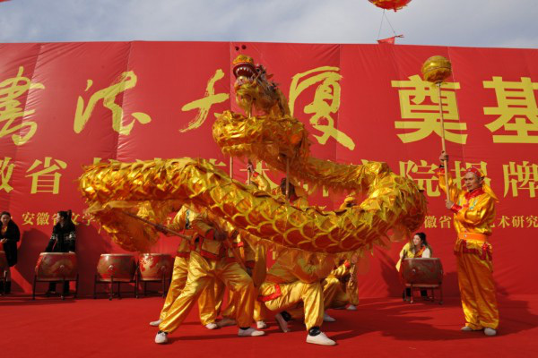 中国书法大厦奠基暨安徽省书法艺术研究院揭牌仪式上舞龙表演