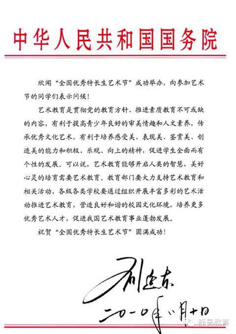 2.新形势要求加快发展学校艺术教育。近年来,学校艺术教育取得了较大的发展,艺术教育的育人功效日益凸显,学生艺术素质普遍得到提升,高等学校和中小学相互衔接的艺术教育课程体系初步建立,课堂教学、课外活动和校园文化三位一体的艺术教育发展推进机制基本形成。但是,艺术教育依然是学校教育中的薄弱环节,存在诸多困难和问题,艺术课程开课率不足、艺术活动参与面小、艺术师资短缺的状况没有得到根本改善,农村学校缺乏基本的艺术教育,艺术教育的评价制度尚未建立,这些问题制约了艺术教育育人功能的充分发挥。面对新形势和新要求,学校艺术教育必须在新的历史起点上加快发展。