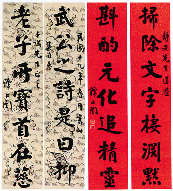 谭延闿善诗联,擘窠榜书、蝇头小楷均极精妙。书法作品兼有艺术和文物双重价值,国内民间所藏多集中于湖南。