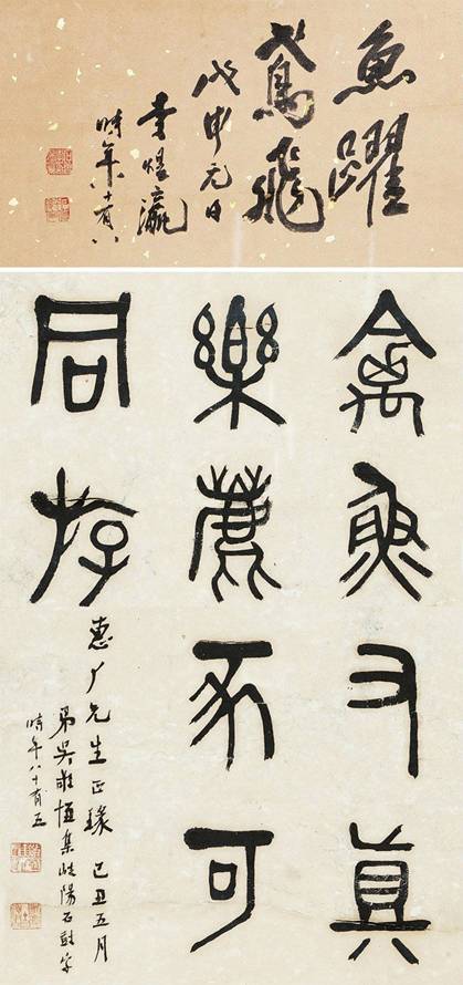 稚老的石鼓文写得线条静穆,结体安然,好像没有那种跳跃性的躁动感,而且其落笔清新干净,线条在平直中又略带一点弯曲,使得字又生动灵活起来,通篇观之,则别有天趣。若比之缶老书法中的霸悍强劲之势,吴稚晖这类文人书法,就显得有点内敛羞涩,不够专业的样子,然而正是由于书家的这种业余状态,反而使趣味从中生焉。