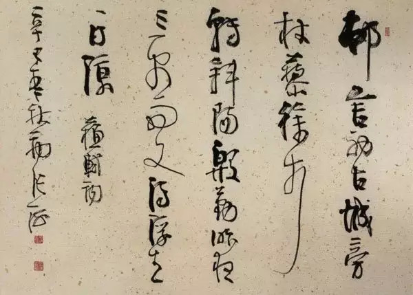 在老张的著名作品里搜寻了半天,愣是找不到多少传统的痕迹——这开拓性,舍张海其谁!这可能不怪老张,是他隐藏太深,别人看不到吧。老张也想在传统中多呆几天,可是他进不去,于是胡乱抓几把涂在脸上当胭脂粉。别说,这胭脂粉管用,至少在评委会主任的宝座上能“独当一面”。