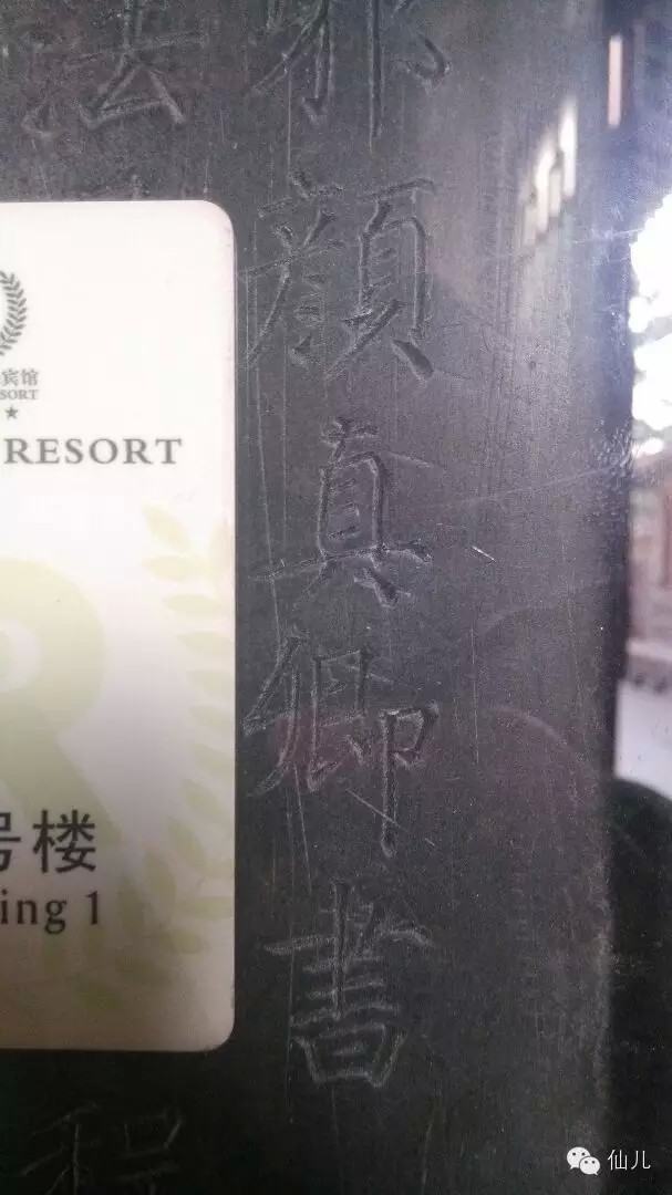 下面这几张图片,是我在西安碑林现场拍摄的原碑(原碑上都有玻璃罩着,并没有直接接触文物)。下图的左边的对比物,是一张宾馆的门禁卡,和普通的银行卡、信用卡一样大,通过对比可以看出,一张信用卡纵向可以绰绰有余地装下《多宝塔》的三个字,《玄秘塔》的两个字,集王《圣教序》的四个字,后面的两个隶书碑,不考虑原碑字距的话,一张信用卡也能装下三四个。这里要说明的是,古人即便有放缩技术,也不会在这种场合用,所以这几块碑上的字,就是书家笔迹的原大。