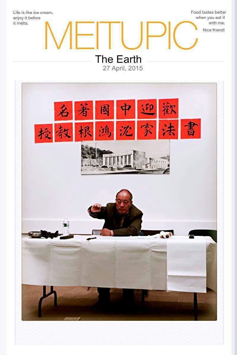 4月27日晚,为弘扬丶中国传统书法文化。由美籍华裔画家张淙和纽约古董鉴定公司林信傑先生邀请主办,北美书协协办的中國當代著名書法家沈鴻根教授的書法講座圆满结束。他從中國文字的起源、發展以及書法的執筆、用墨,布局,印章等方方面面,并当众作诗揮毫示范。书法爱好者都表示受益匪淺。参加活动的嘉宾有北美书法家协会会长沈新徳,副会长黄田,顾问邱辛晔,秘书长黄茶,诗画琴棋陳偉區,武汉书法家协会严众开等。