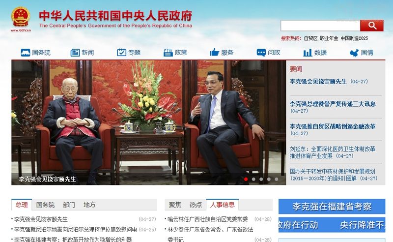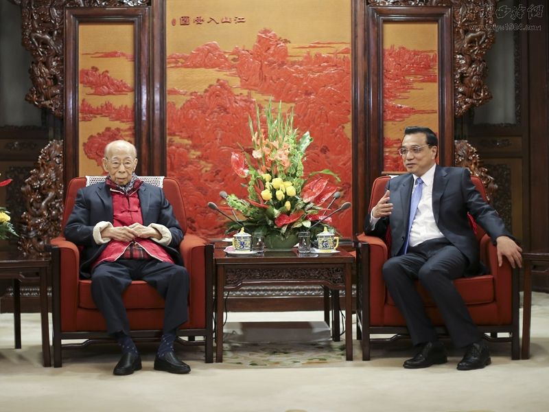 国务院总理李克强27日下午在中南海紫光阁会见西泠印社社长饶宗颐先生。