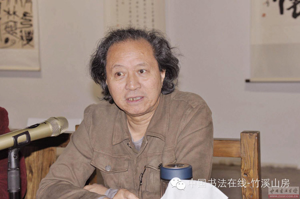我们站在新常态下,怎么样回归我们的平静,前面很险峻,我们要重新认识什么样好的作品,有文化价值和艺术价值的作品。反过来我们的书法家在这个时候要努力,为社会提供一种新的,打开我们的视野。不要像中国书协现在办的大讲堂一样,老叫那几个培训中心的教授来讲书法,为什么不能叫文学家、历史学家、考古学家、音乐家、画家给讲一讲呢。我在网上也专门发了言论,也没有人理睬这一件事情。还是那几个评委,技术性评委,今天的书法家完全按技术条线评定是不是优秀书法家,就是所谓点画啊,回归二王啊这些东西。那些点化早就被颜真卿、徐志摩早就否定掉了,今天还沉渣泛起。如果按照王羲之的标准,颜真卿就不是书法家,徐志摩肯定就不是书法家,还有什么郑板桥、伊秉绶,就没有了。所以说这个沉渣泛起,泡沫,包括理论泡沫,导向的泡沫,我们都要清醒的认识它,寻找我们今天书法艺术的新常态。