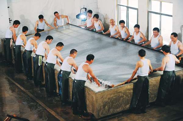 作为国内最大的手工纸,“千禧宣”上一次抄制在2000年,其规格为216.2cm×629.1cm,适宜创作大幅作品或题材厚重作品。当年,“千禧宣”作为最大的手工纸成功创造吉尼斯世界记录。据该厂生产负责人介绍,一张“千禧宣”从捞制到成品,前后需要50名员工协力完成。每张出槽的“千禧宣”重达4斤1两,本次抄制的“千禧宣”总量不超过4000张。