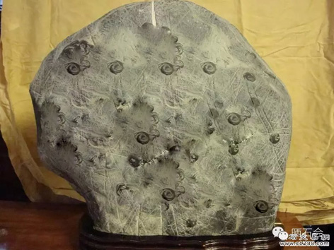 (6)灵璧石假借。用太湖石、栖霞石、武陵石、英石、默石、博山纹石冒充灵璧石。这种假主要是对初入门者和一种误导,有些刚入门者由于涉足灵璧石收藏不久,缺乏实践经验,常把一些其它种类的石头当做灵璧石买入。由于这种事情时有发生,且销售时还就说是灵璧石,以误导消费者,我们姑且把这种误导也作为造假之一吧。