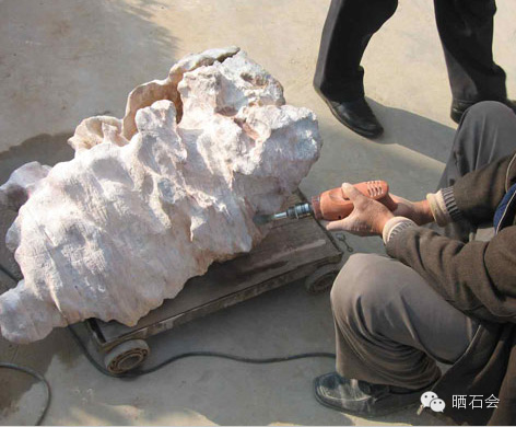 (8)灵璧石做洞。造型石、景观石等石体上的孔洞,可使石头陡生灵气,空灵剔透,玲珑可人。它的价值无形中也大的多,因而也激起了造假者对作洞的利益驱逐,特别在灵璧石中还有这样一句话“纹石带洞价格要命”据此可见一斑。造伪者的主要手法是先用电钻、电刷等做好洞后,再通过“打磨”“酸泡”方法,做出玲珑剔透的造型,然后开出天价欺骗消费者。