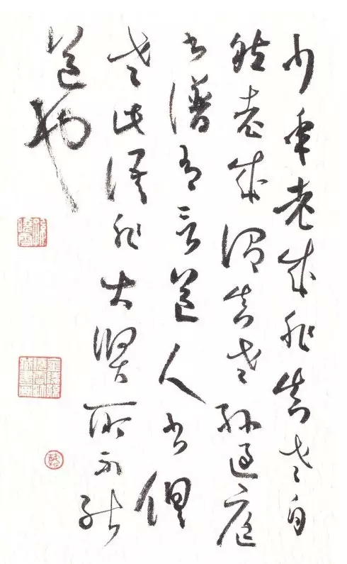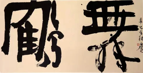 2,现代派书法。将书法视觉元素空前突出,进而将绘画和书法整合起来,使书法更象抽象绘画。强调反传统书法,对线条、行气、章法之类不感兴趣,而对空间结构、视觉冲击力、墨色块面情有独钟。