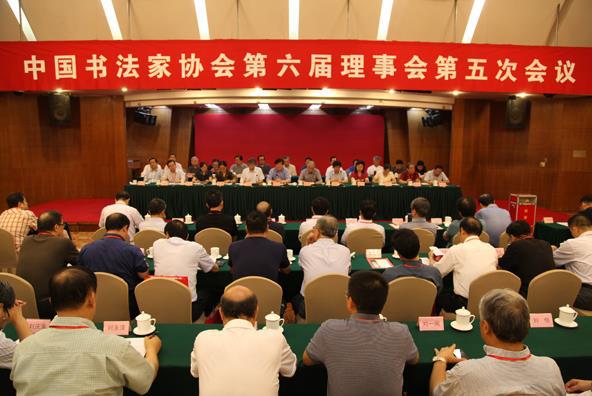 中国书协主席张海讲话,中国书协分党组书记、驻会副主席、秘书长陈洪武作工作报告。会议通过了《中国书法家协会第六届理事会第五次会议决议》。根据决议,中国书法家协会第七次全国代表大会将于2015年第四季度在北京召开。