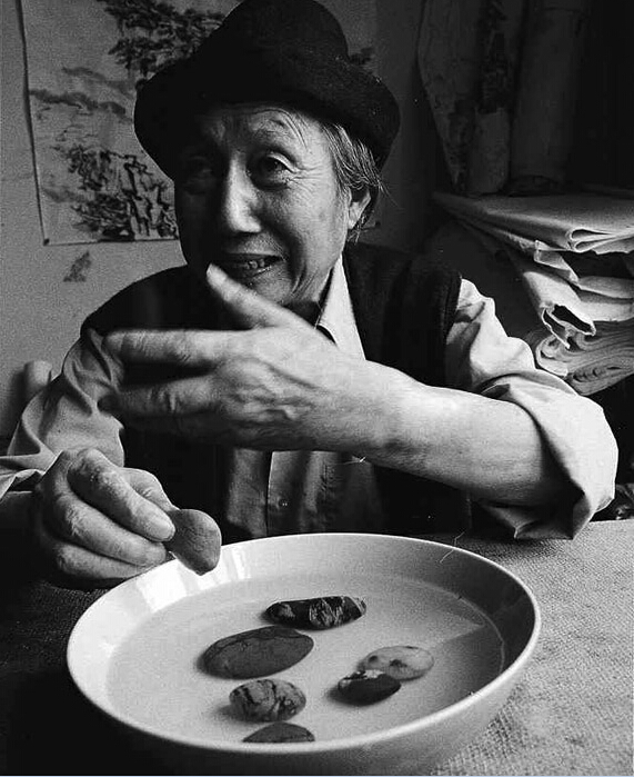 陆俨少先生面对镜头总是很少笑容。有一次,蔡斯民发现陆俨少的橱柜里摆了7颗小石头,这些是他当年逃难时在三峡河滩捡的,一直随身带着,以纪念那段流离岁月。