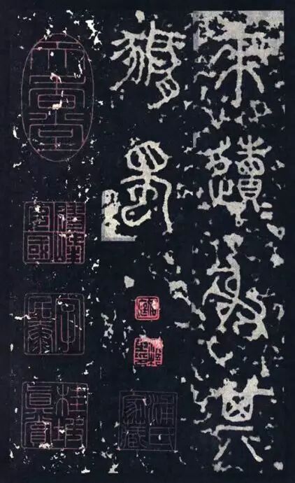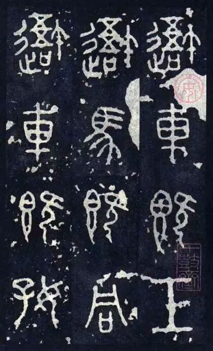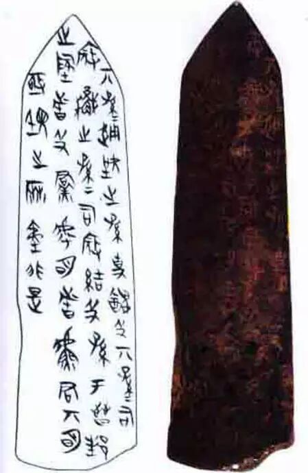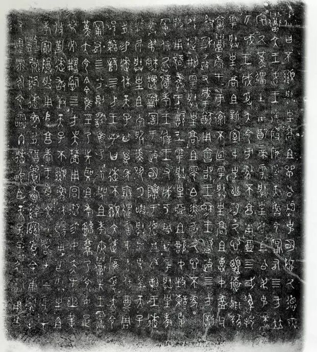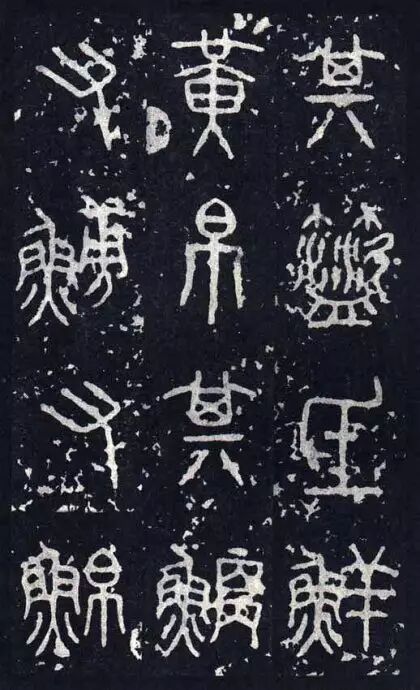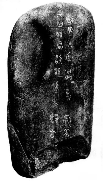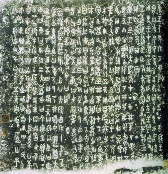 石鼓文先秦刻石文字。我国遗存至今的石刻文字,要属《石鼓文》时间最早和最具代表性。石作鼓形,共十鼓,分别刻有四言诗一首,径约三尺余。内容记述秦国君游猎,故又称“猎碣”。因被弃于陈仓云野,也称“陈仓十碣”。所刻为秦始皇统一文字前的大篆,即籀文。石原在天兴(今陕西宝鸡)三畤原,唐初被发现。自唐代杜甫、韦应物、韩愈作歌诗以后,始显于世。一说为宋代司马池(司马光之父)搜得其九,移置府学,皇祜(1049—1053)间向传师始得其全。大观(1107—1110)中迁至东京(今河南洛阳)辟雍,后入内府保和殿稽古阁。金人破汴,辇归燕京,置国子学大成门内。1937年抗战爆发后,石鼓文南迁至蜀,战争结束后始运回北平,现藏故宫博物院。其刻石年代,唐代张怀瓘、窦皋、韩愈等以为周文王时物;韦应物等以为周宣王时物;宋代董逋、程大昌等以为周成王时物;金代马定国以为西魏大统十一年(545)刻;清代俞正燮以为北魏太平真君七年(446)刻;以为秦物者,始自宋代郑樵,清代震钧以为秦文公时物;今人马衡以为秦穆公时物,郭沫若以为秦襄公时物,唐兰则考为秦献公叶十一年(前374)刻,详见《石鼓年代考》。刻石文多残损,北宋欧阳修所录已仅存四百六十五字,明代范氏《天一阁》藏宋拓本仅四百六十二字,今其中一鼓已一字无存唐初“虞、褚、欧阳共称古妙”(引自《元和郡县图志》)。张怀瓘《书断》云:“《石鼓文》开阖古文,畅其戚锐,但折直劲迅,有如铁针而端委旁逸又婉润焉。”近人康有为《广艺舟双楫》谓:“《石鼓》如金钿委地,芝草团云不烦整裁自有奇采。”传世墨拓善本有元代赵孟頫藏本(即范氏《天—阁》藏本)、明代安国藏中权本、先锋本(亦称“前茅本”)、后劲本,皆宋拓本。《天一阁》本已毁于火,后三种俱在日本。有影印本行世。原石现藏故宫博物院。