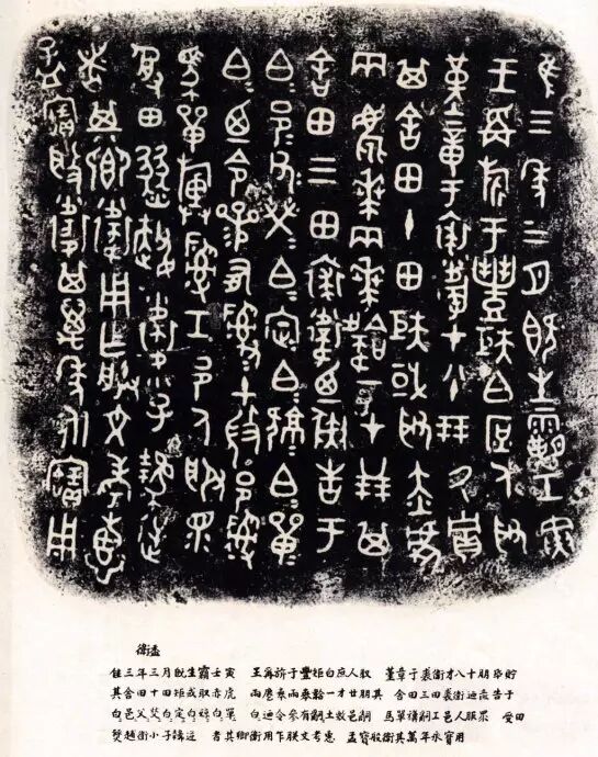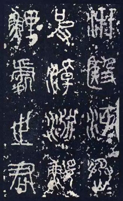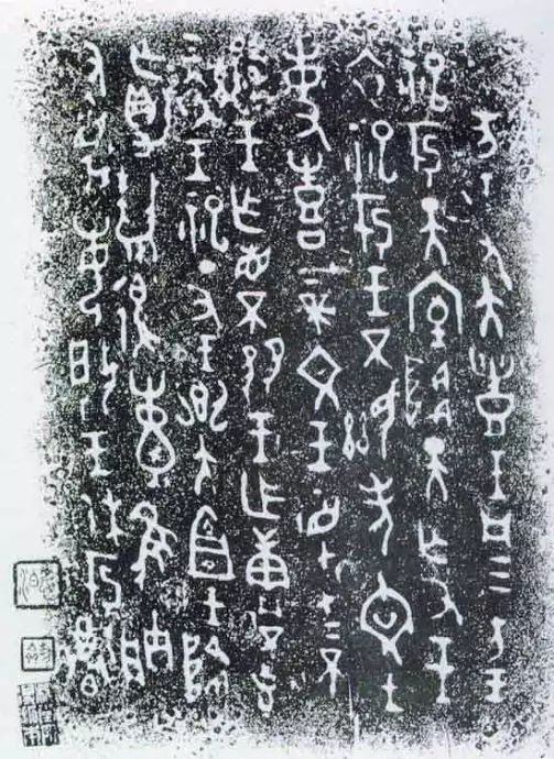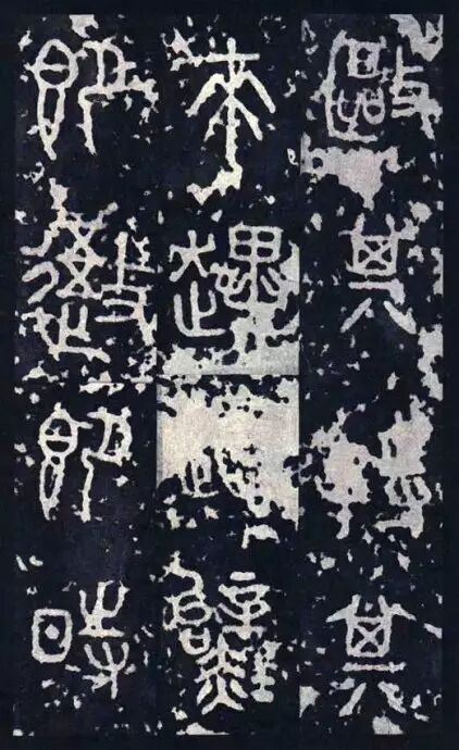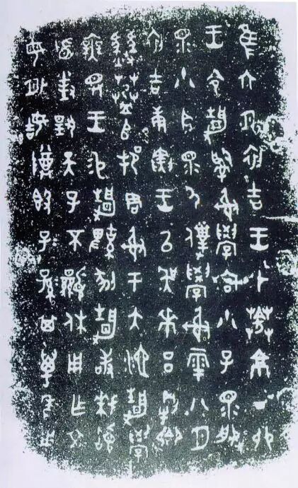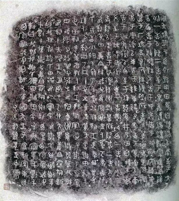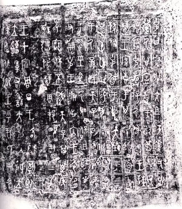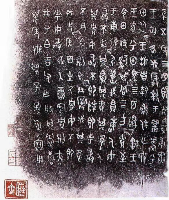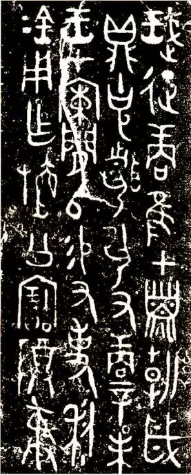铭文字形参差错杂,变动不居,在拙朴散乱中显示运动与和诣之美,有轻有重的笔画在某种程度上有自然书写带来的笔墨痕迹。其铭文用韵协调,开创了千古词赋先河,也是我国韵文的最早表现形式。