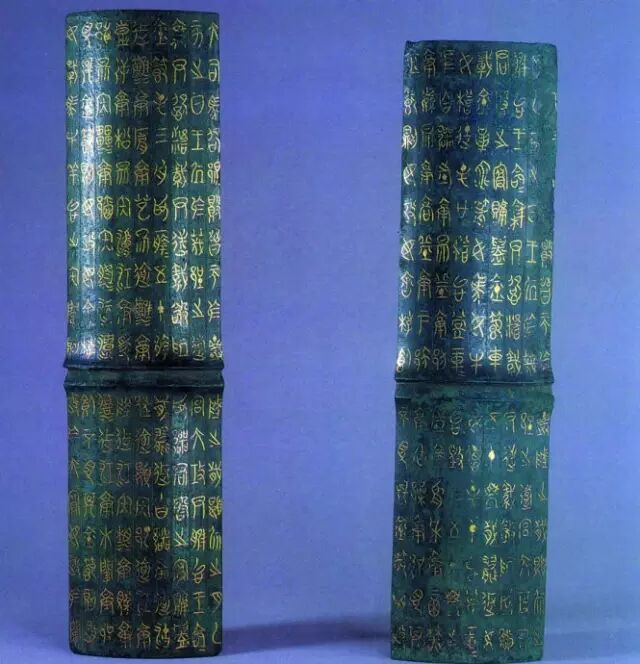 1957年出土于安微省寿县,是战国中期楚国器,青铜制成,形似剖开的竹节,是当时楚怀王(公元前三二八——前二九九年)发给受封在湖北鄂城的鄂君启的水、陆通行符节。节上刻文圆润秀劲,庄严肃穆,是错金铭文中的精品。