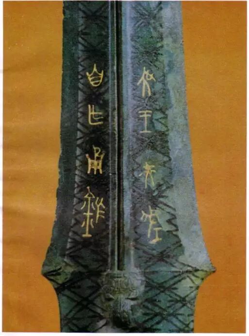 此剑剑锷锋利,剑身满饰花纹,剑谭饰嵌绿松石兽面纹。剑身近格处镌“攻痦王夫差自乍其元用”八字,为吴王夫差用剑。吴王夫差兵器已发现多件。夫差是吴王阖闾的儿子,于公元前495年继王位,次年击败越王勾践,继而转师北上,争霸中原。公元前482年,吴王夫差与晋定公盟于黄池(今河南省商丘县南)。