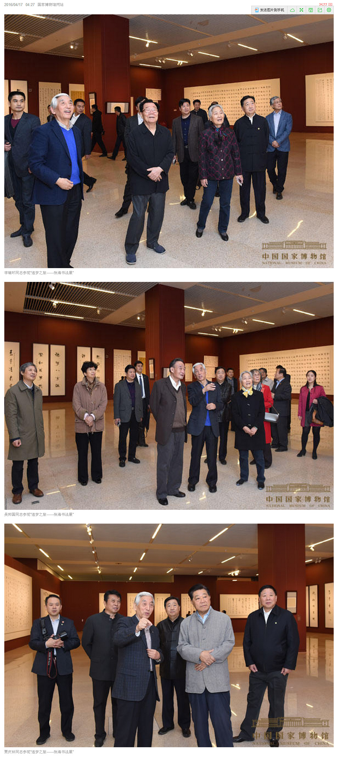 严隽琪、吉炳轩、杨洁篪、韩启德、李海峰、卢展工、马飚、曹刚川、王刚、周铁农、黄孟复、孙家正、李金华、陈宗兴等同志也先后来我馆参观了“追梦之旅——张海书法展”等展览。 (撰文:张伟明 摄影)