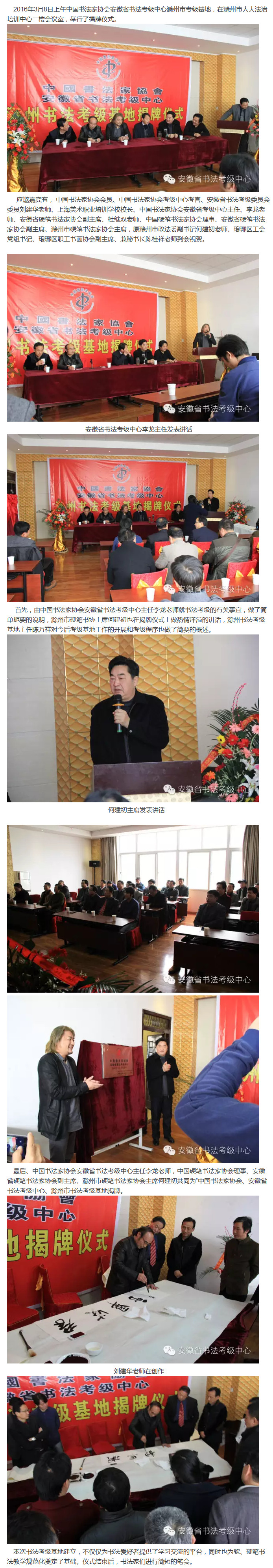 中国书法家协会安徽省考级中心滁州基地挂牌成立