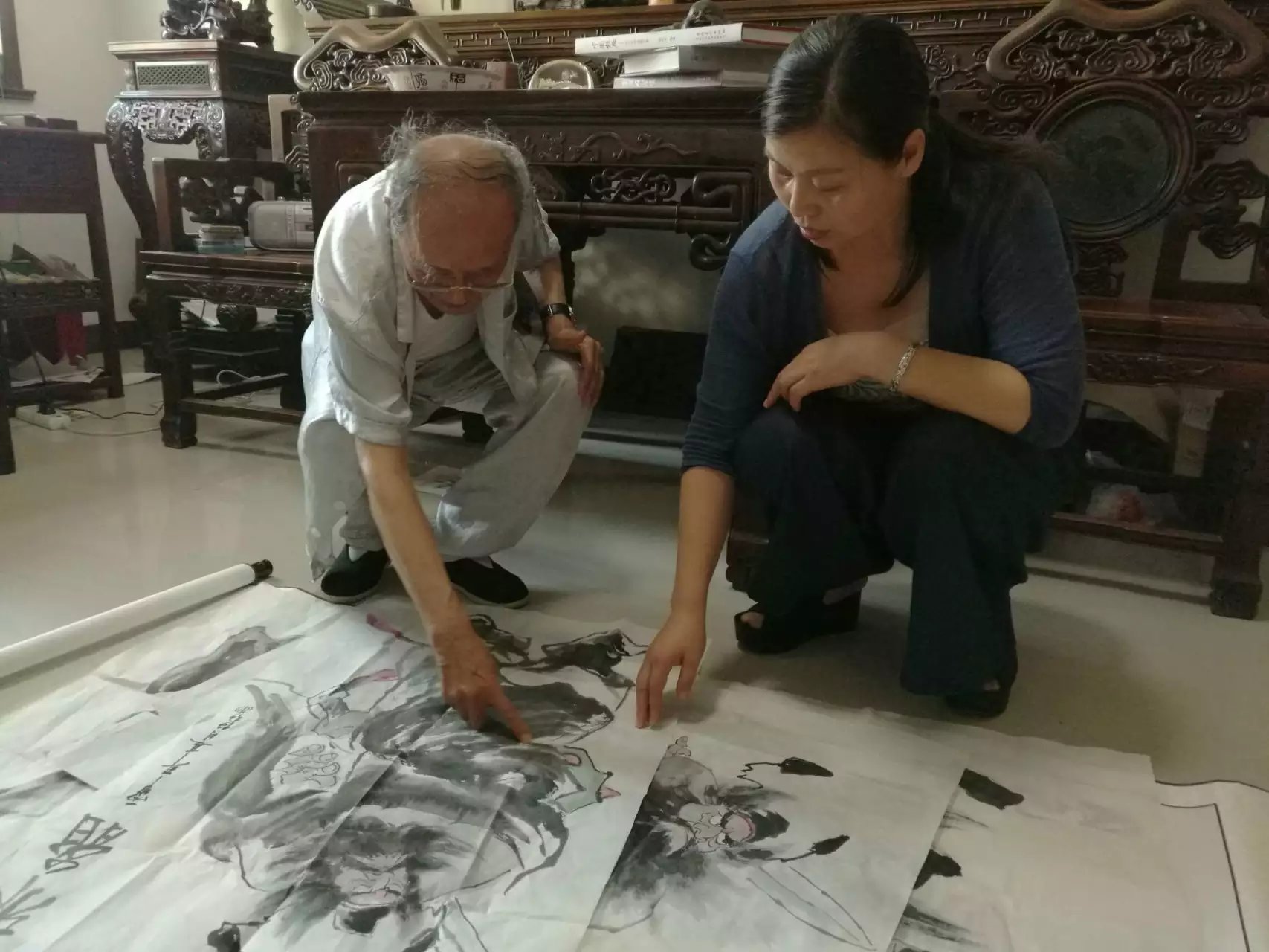 7月23日下午,冒着桑拿一般的天气,中国人民书画网总编李明与编辑任红雨看望国礼大师、文化泰斗孙老淮滨先生。85岁高龄的孙老不顾天气炎热从三楼书画室亲自到大门口迎接,让我们深受感动,从孙老谦虚的待人态度中也学到了国礼大师的思想深处无处不在的“礼”。