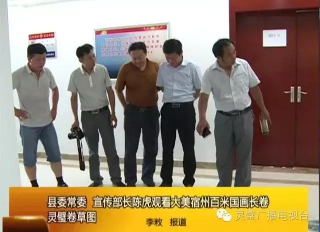 7月27日,县委常委、宣传部长陈虎在县文广新局、县文联等相关负责人的陪同下,观看了大美宿州百米国画长卷灵璧卷草图。