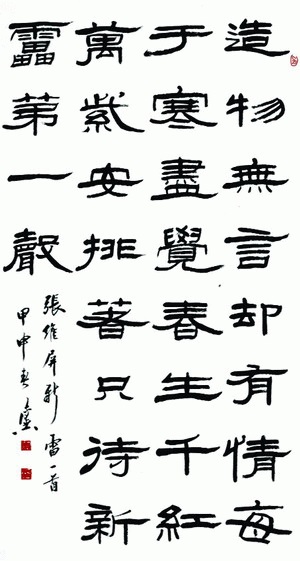 但比起编辑,方传鑫的书法名气更大。方传鑫学书从隶书入手,师从来楚生、方去疾,亦曾得马公愚等大家指授,其作品曾连续入选于全国一至七届书法篆刻展。对于自己的书法之路,方传鑫坦言,其实还是以临摹、读帖为主,在此基础上进行创作,就隶书而言,隶书的发展有两大鼎盛时期,一是汉代隶书,二是清代隶书,“汉代竹木简牍的墨迹,读帖时发现其用笔的收笔处,绝大部分是出锋的,笔画的连接处笔势往来明显,给我以极大的启发。清代隶书也是以读帖为主,伊秉绶、邓石如隶书是清代的两座高峰。伊秉绶隶书雍雅大度,章法奇特而不失庙堂之气。邓石如隶书力能扛鼎,将疏可走马、密不透风的创作理念发挥至极点。赵之谦隶书把魏碑的笔意融入到隶书,是极顶聪颖的运笔巨匠。何绍基隶书绵里藏针,其阴柔之力无人能及。拜读先贤墨迹使我受益匪浅。”
