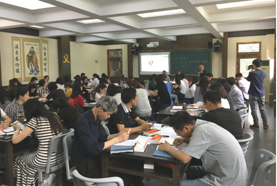 在弘扬与传播国萃传统文化的氛围下,国家对中小学的书法教育愈加重视。5月15日下午,回宫格创始人杨为国教授因杭州市留下小学校长孔庆根的邀请,为留下小学全体教师讲授《方法与教法---回宫格习字法与写字教学之阐述》的专题系列讲座。希望通过讲座将回宫格习字的教学方法传授给全体教师,特别是语文老师,以贯彻在每日课堂生字教学中用以落实写字教育的措施,为日后写字和书法教育工作培养更多的人才,为写字教学的发展打好更坚实的基础。