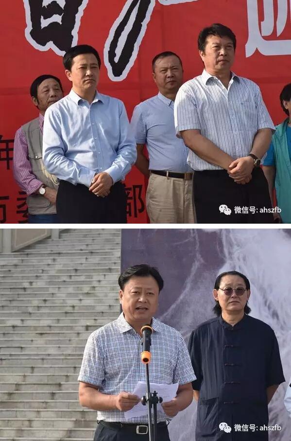 全国政协常委、中国文联原副主席覃志刚,宿州市委书记、市人大常委会主任史翔出席,市委常委、宣传部长、总工会主席何志中主持,副市长吕剑、砀山县委书记王广敏、央视国学频道总监李静等出席。全县各单位书画爱好者和学生代表等1000多人参加开幕式。