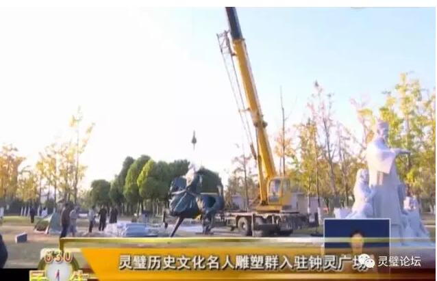中安在线讯 据拂晓新闻网报道,经过中国雕塑名家陆金老师历时一年半的创作、浇筑或雕刻,11月5日,灵璧历史名人雕塑群入驻钟灵广场并开始人像安装,一星期后将公开亮相。