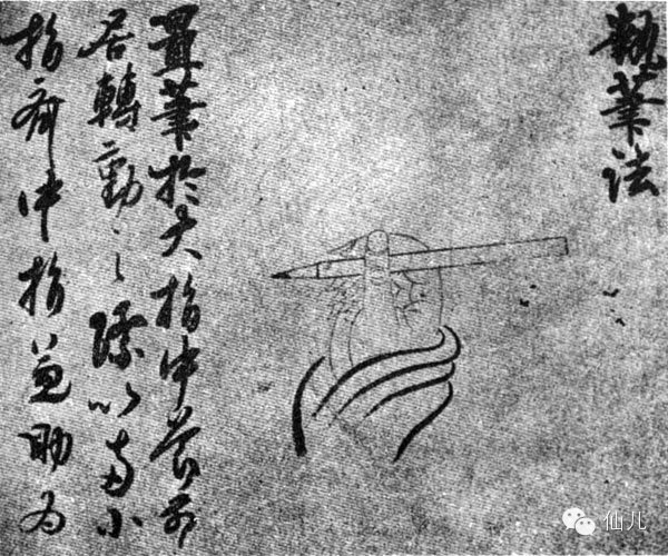 学书法的第一课,往往要教执笔。有些老师有一套教法,如五指执笔、指实掌虚、掌心要容下一个鸡蛋,笔杆要正对鼻尖,距鼻尖一尺左右。要捏得紧,从上面突然一拔,要拔不动等等。这些说道,其实有些几百年前就被人诟病,不知为何还在民间流传。