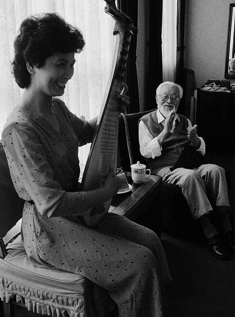 朱屺瞻在拍摄的十几位名家中年事最高。得知朱老喜欢听苏州评弹,蔡斯民特别请了两位评弹演员到他家表演,朱老高兴得像小孩一样。