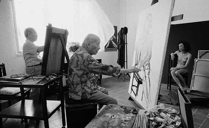 蔡斯民与刘海粟的友谊是在新加坡建立的。当时刘海粟的门生刘抗为刘海粟特别安排了一次人体写生,这对于已经数十年没画过人体的刘海粟来说,是一次很有意义的创作。蔡斯民得知这一消息后,在现场拍下了这历史性的一幕。