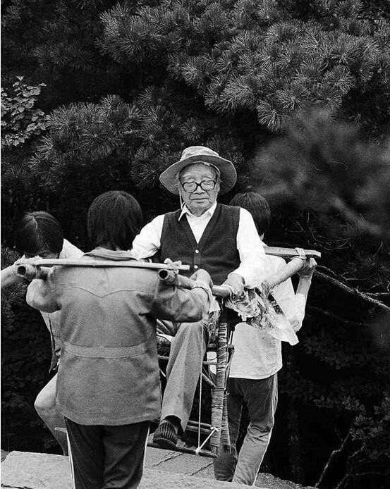 已93岁高龄的刘海粟要“十上黄山”写生。消息一出即被新闻界广泛关注。在崎岖的山路上,有一位特殊的摄影师,他就是蔡斯民,是他在新闻媒体层层的“包围”中抢拍下了这些珍贵的照片。