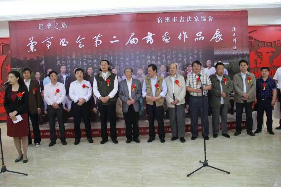 5月27日,追梦之旅—宿州市兰亭书会第二届书画作品展在市博物馆开幕。市文联副主席杲春昭、秘书长韩飞,市著名书画家郭大华、赵琦、陈光林、陈晓辉、朱绍俭等出席开幕式。 追梦之旅书画作品展共展出名家祝贺作品16件,会员作品112件,书法作品真草隶篆,书风纷呈;绘画作品花鸟虫鱼,画姿天然,为宿州人民献上了精美的文化大餐。 (编辑:任红雨)